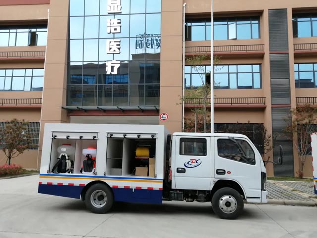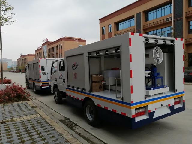 用于消殺室外環境的細菌,病毒,和蚊蠅等媒介昆蟲。車內配置超低容量噴霧機、常量噴霧機等設備??上咎幚砻娣e:>500㎡可連續反復充裝;殺蟲處理面積:2500—100000㎡。