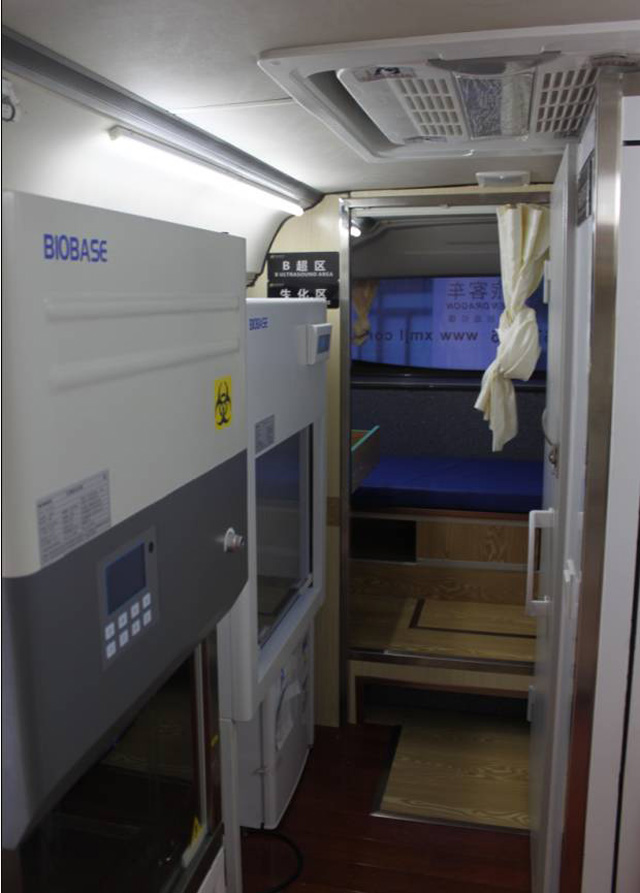 在正規的體檢醫療車上,同時配備有心電圖檢查儀、檢查床、冰柜、空調和紫外線消毒燈等一系列正常體檢和急救所需的所有設備。因為其流動性強,在下鄉醫療活動中起到了很關鍵的作用,對于某些經濟不發達的地區,醫療條件較差,相關衛生部門可以組織免費體檢一類的活動,大大方便了那些沒有錢進行定期體檢的人。車上有B超檢測器、胸透等儀器,孕婦也能做些保險性的檢查。體檢醫療車分為幾種,分別為全科體檢車、婦女健康管理車和DR體檢車。比較而言,前者是一把抓,中間一個是分特定對象的,而最后的是搭配有DR設備的體檢車。