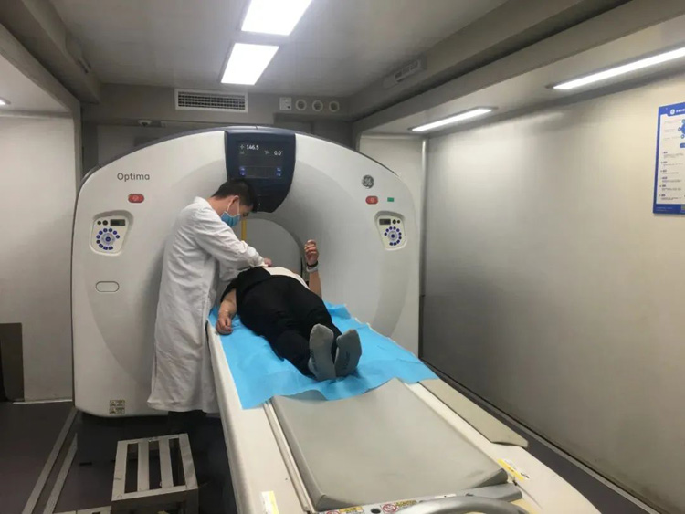 胸部CT檢查對于危重癥的鑒別非常重要。如果血氧飽和度低到一定程度,我們的大腦中樞會感知并出現代償反應。會通過增強呼吸運動增加氧氣攝入,因此會感到氣急、胸悶,老年人可能會反應遲鈍、意識模糊。此外,嘴唇、指甲都可能出現紫紺。降低居民朋友交叉感染的風險,提升疾病篩查的能力,緩解CT影像的資源緊缺,移動CT車開進社區,對于部分患者,特別是有基礎疾病,如老年人,慢阻肺、支氣管疾病、肺癌、心衰、腎衰的患者,要特別小心,可能會出現危重癥,這時候上移動CT車做個肺部CT就非常有必要。